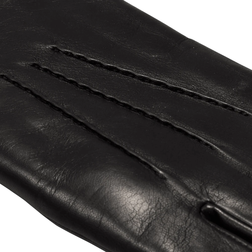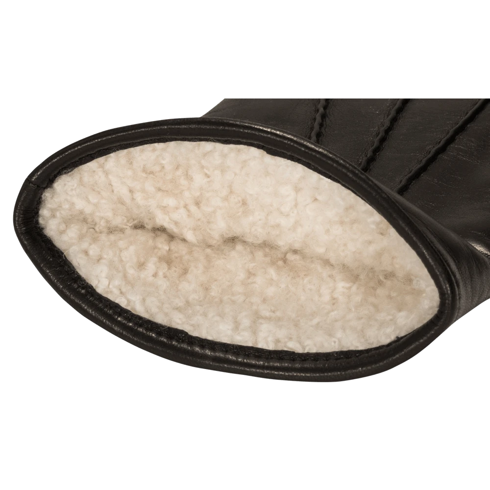 Say goodbye to icy cold hands with these durable black leather Aldo gloves that come fully lined with plush lambswool. The sleek lambskin leather exterior is effortlessly elegant and 100% wind and waterproof, while the thick lambswool lining will keep your hands toasty, no matter the weather. The off-white lambswool and three decorative seams on the hand give these gloves an extra luxury look.