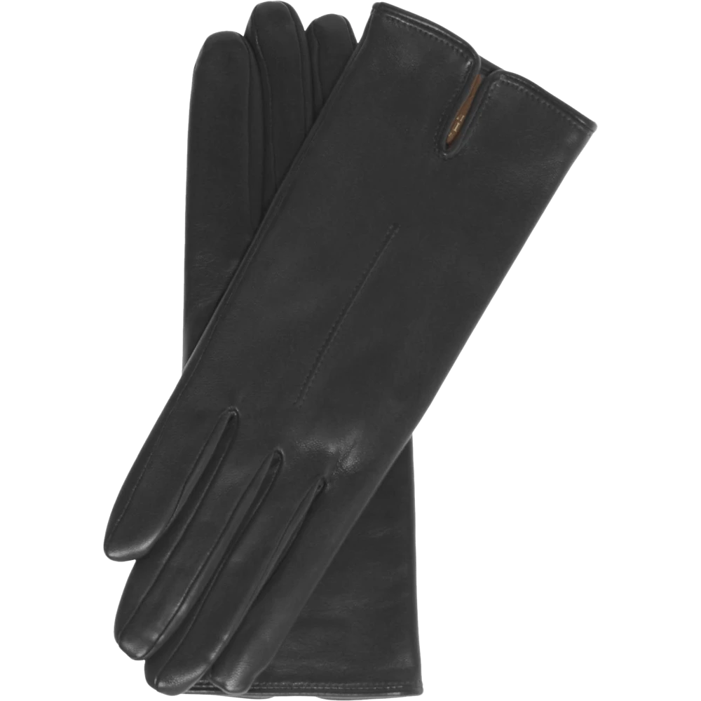 WOMEN’S ITALIAN SILK/CASHMERE BLEND LINED LEATHER GLOVES LAMBSKIN BLACK